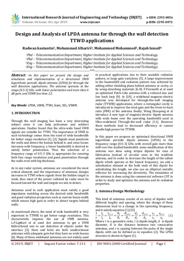 Irjet Design And Analysis Of Lpda Antenna For Through The Wall De
